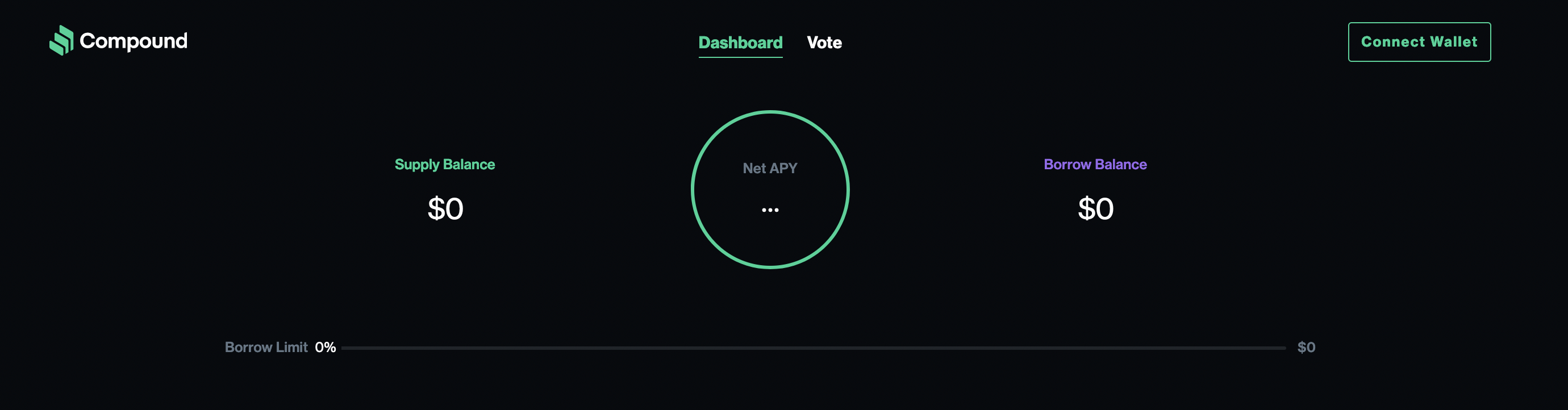 Open Compound and you can see that there are many tokens listed. These tokens are the financial projects accepted by the "bank". If you have any of these tokens, you can deposit them, so that you can get a higher interest rate than the deposit provided by traditional banks with extremely low risk.